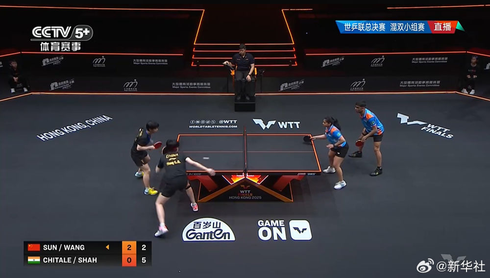 王楚钦/孙颖莎击败印度组合玛纳什·沙/奇塔莱。